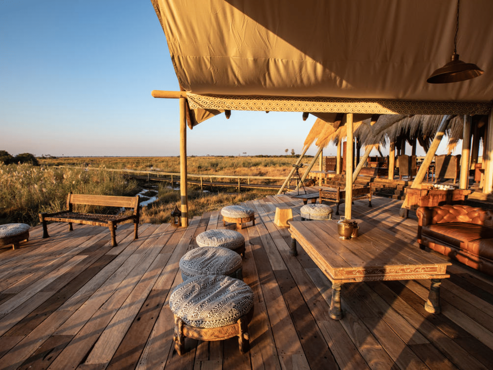 Das Selinda Camp von Great Plains liegt im privaten Selinda-Reservat zwischen Okavango-Delta und Linyanti-Fluss. Die Zelte sind elegant gestaltet, mit Blick auf die weiten Überschwemmungsgebiete. Besonders beeindruckend ist das natürliche Lichtspiel während der Trockenzeit.