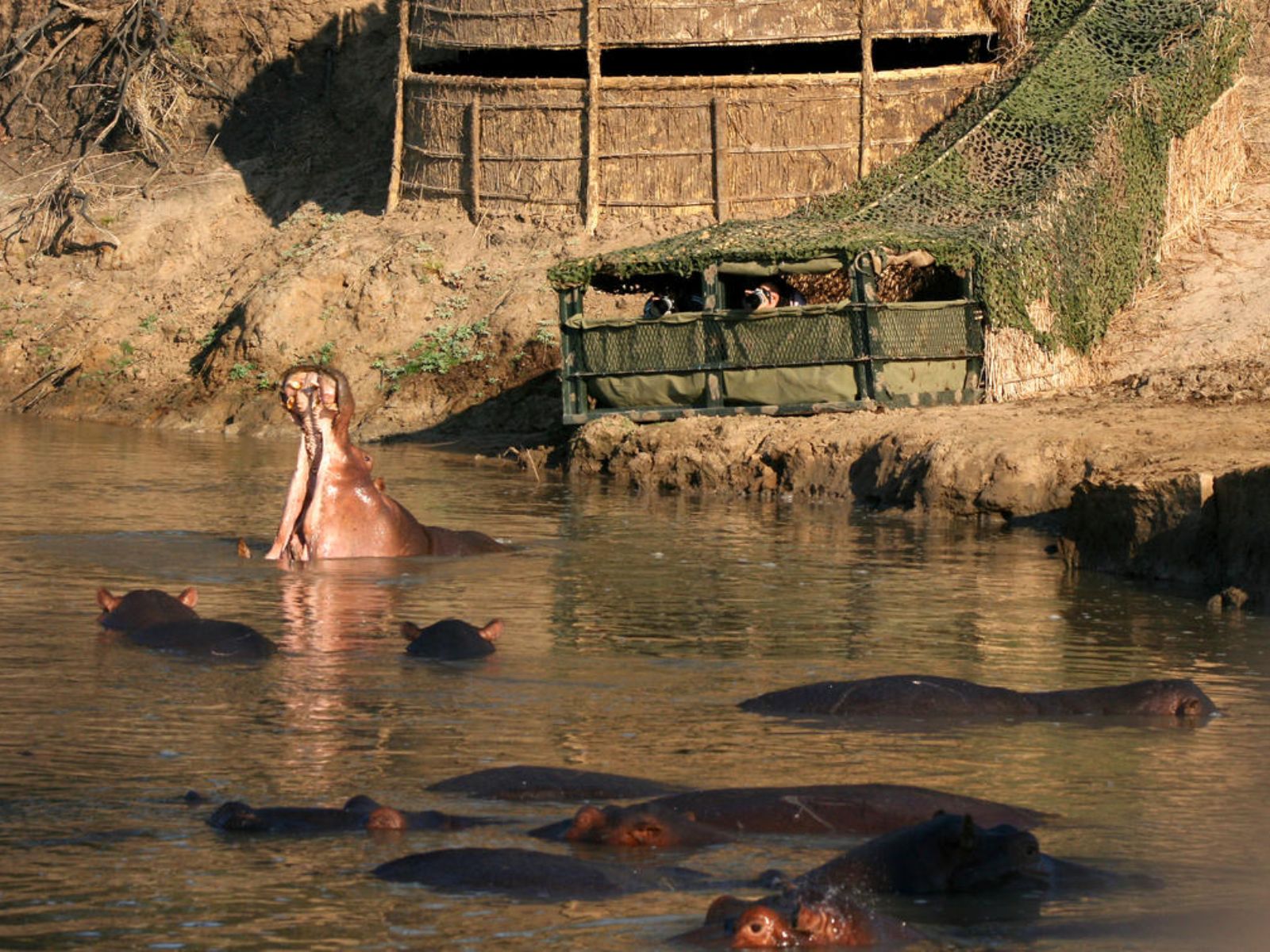 Shenton Safaris bietet zahlreiche, teils spektakuläre Hides. Es gibt zum Beispiel den Hippo Hide, den Elephant Hide und den Wild Dog Lagoon Hide. Ganz besonders ist der „Carmin Bee-eater“-Hide. Dieser ermöglicht Karminspinte aus nächster Nähe zu fotografieren. Außerdem sind weitere mobile Hides im Einsatz.