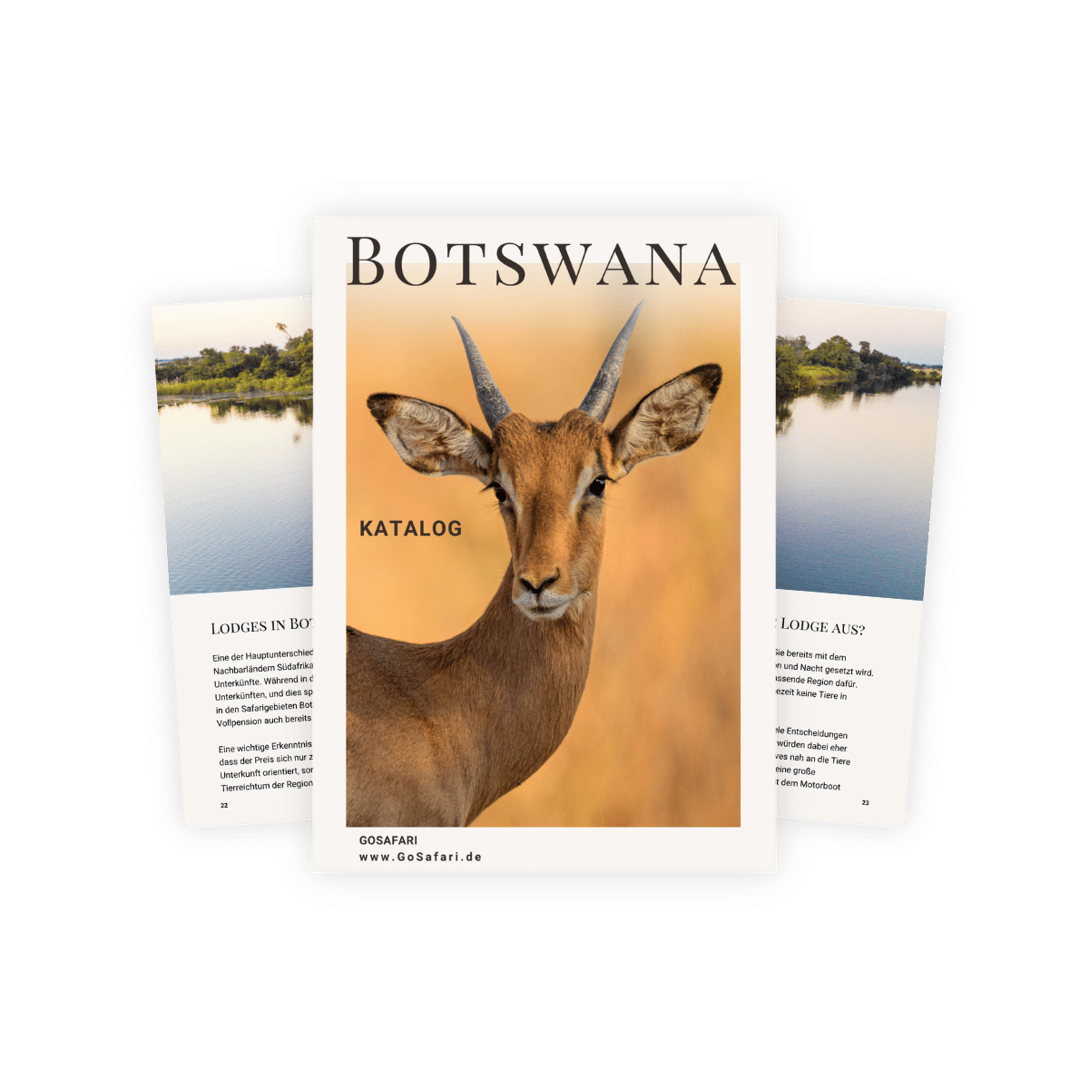 Unser Botswana Katalog nimmt Sie mit in eines der ursprünglichsten Safari Länder Afrikas. Entdecken Sie faszinierende Landschaften vom Okavango Delta bis zur Kalahari, handverlesene Lodges, inspirierende Reiseideen und besondere Botswana Geschichten aus erster Hand. Lassen Sie sich inspirieren und starten Sie mit uns in Ihr ganz individuelles Botswana Abenteuer.