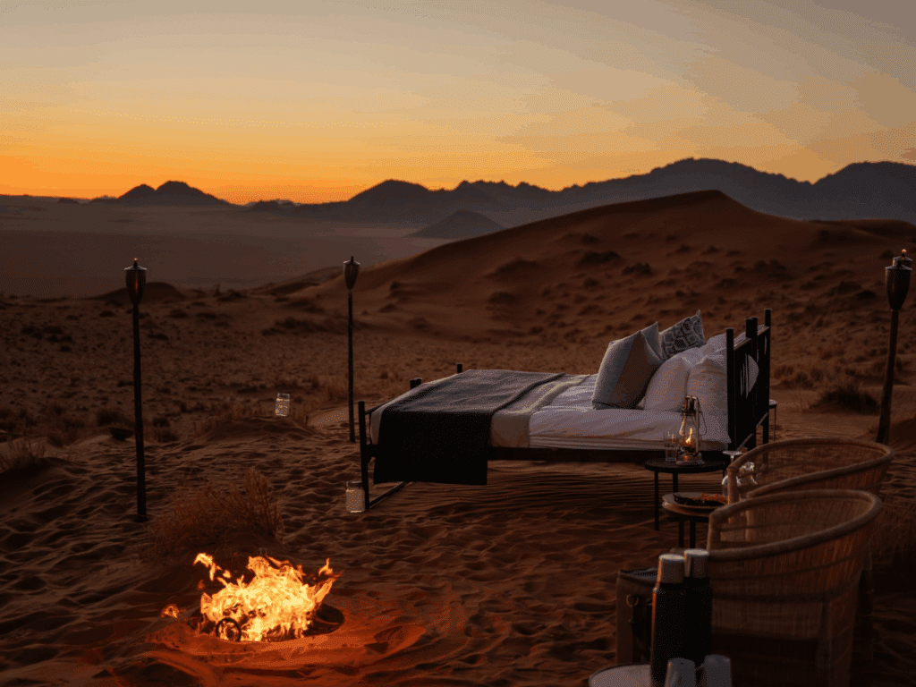 Im Namib Rand werden Sie bereits in Ihrer privaten Suite erwartet, die für zwei Tage Ihr luxuriöses „Zuhause“ ist. Ein privater Koch sorgt hier für Ihr leibliches Wohl und mit einem Privat-Guide erkunden Sie die traumhafte Wüsten-Landschaft aus Panoramafahrten, Spaziergängen und Wanderungen und unvergesslichen Sundowner-Aktivitäten. Das Schutzgebiet beherbergt eine Vielzahl von Wildtieren wie Zebra, Oryx und Springbock. Das besondere sind aber die einzigartigen Landschaften, in denen sich rote Dünen, schroffe Bergketten und weite Ebenen abwechseln.