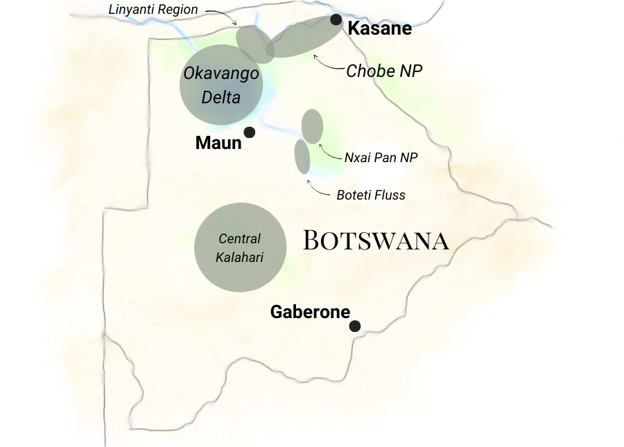 Botswana gilt als absolutes Safariparadies. Im Fokus stehen das weltberühmte Okavango Delta mit seinen Wasserwegen und Inseln, das artenreiche Moremi Game Reserve und der elefantenreiche Chobe Nationalpark. Unter dem Radar lockt die raue Central Kalahari mit seinen schwarzmähnigen Löwen